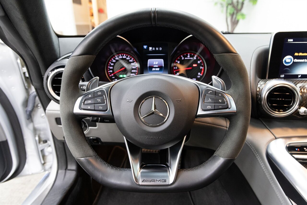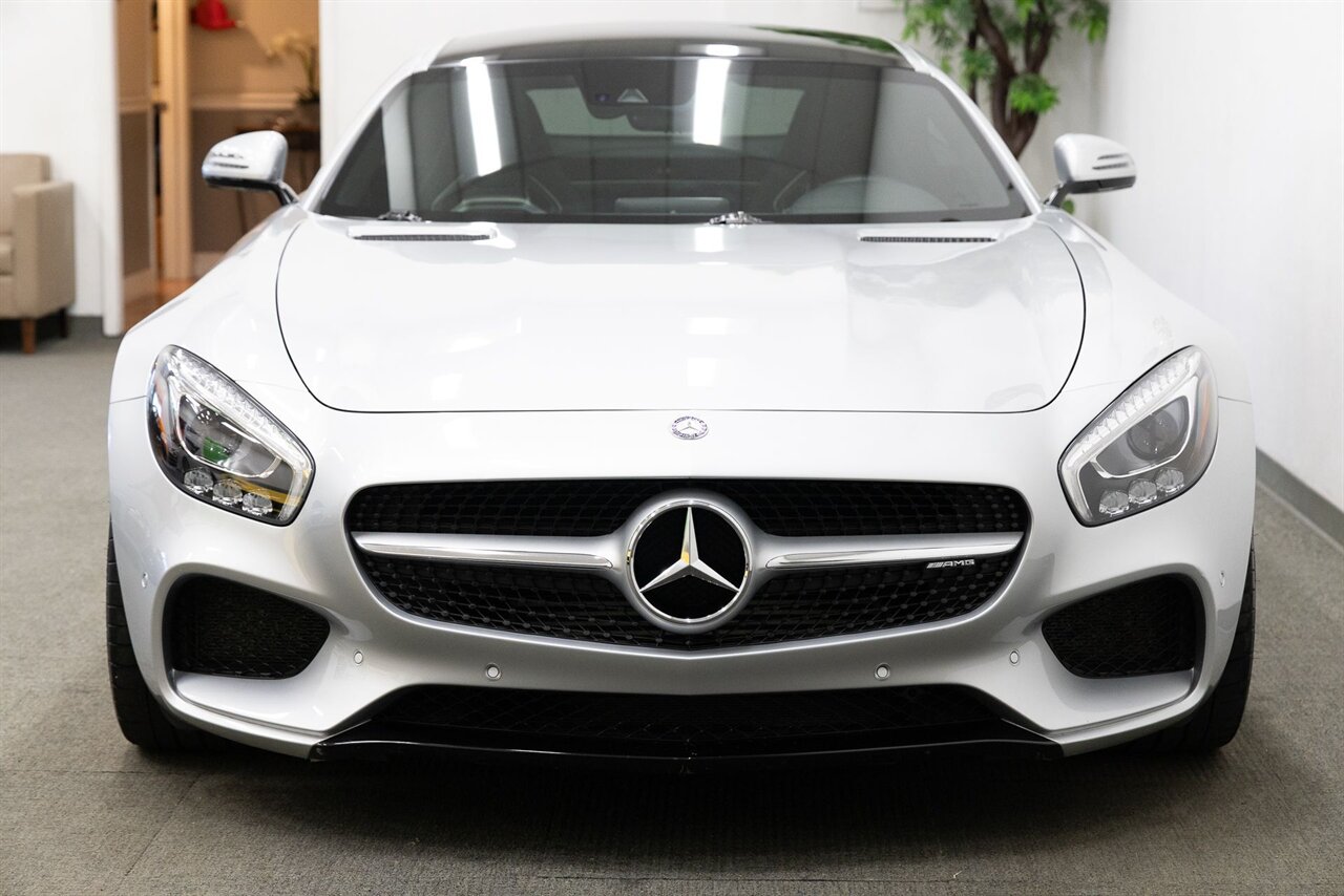 2016 Mercedes-Benz AMG GT S with 24k miles. Iridium Silver Metallic with Silver Pearl and Black Nappa Exclusive Leather.