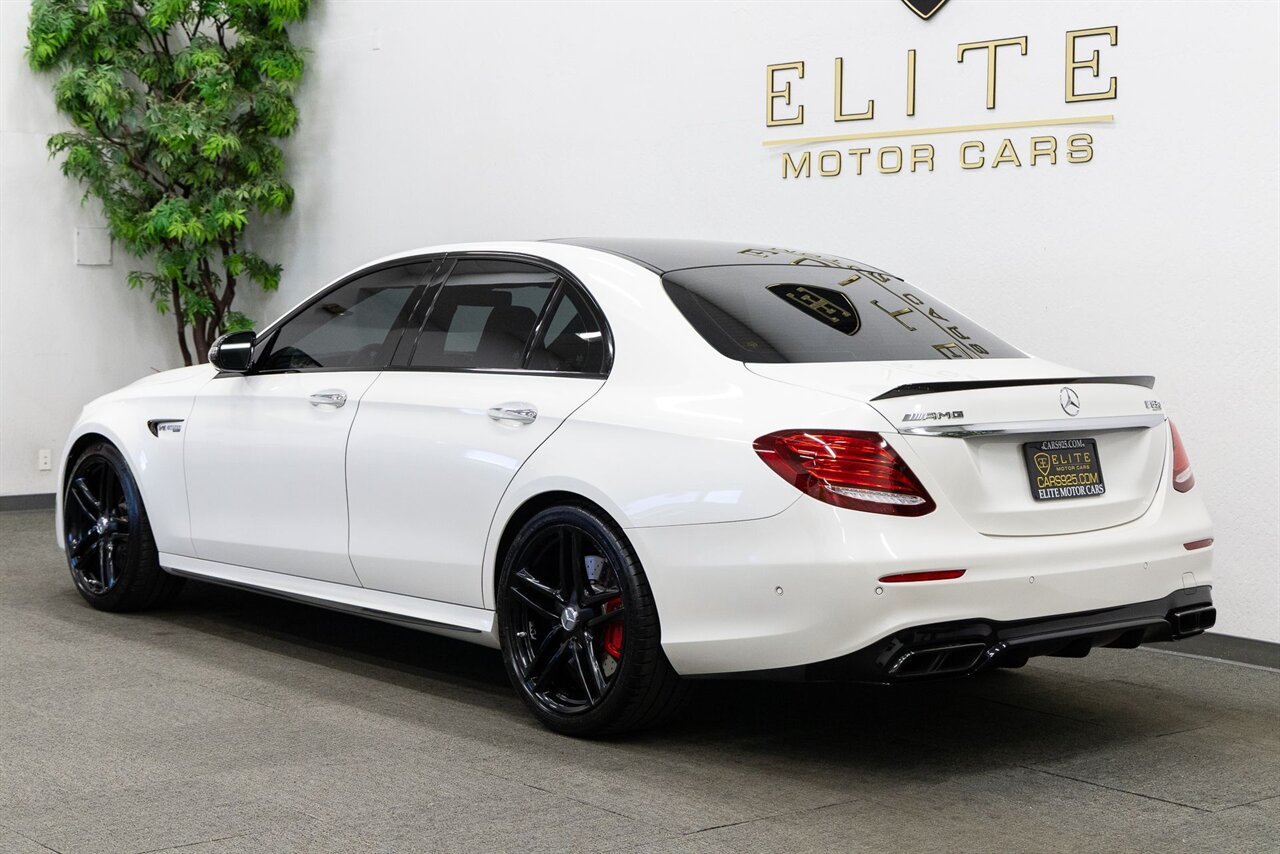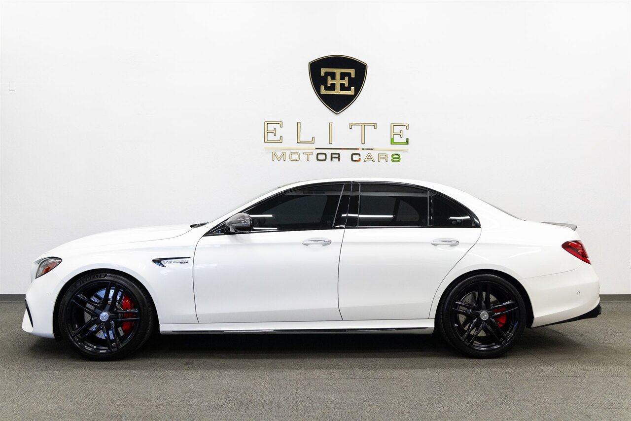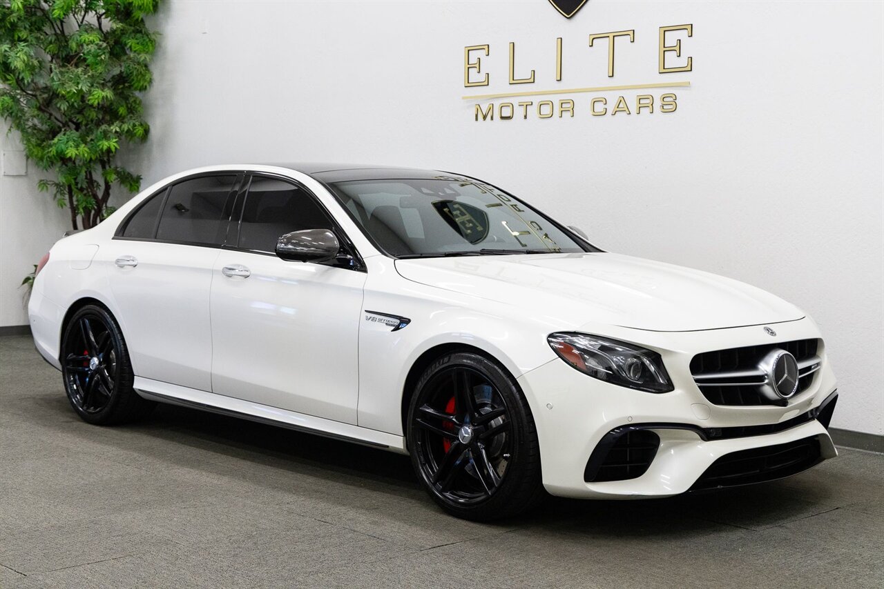 2018 Mercedes-Benz E 63 S AMG with 75k miles. Designo Diamond White with Black Perforated Nappa Leather.