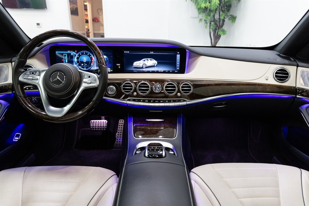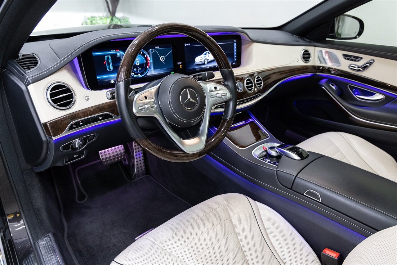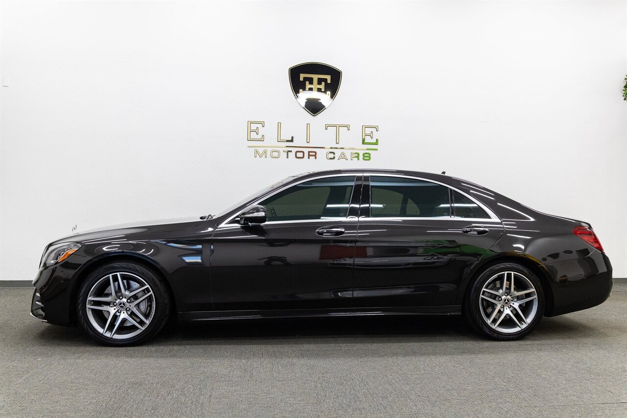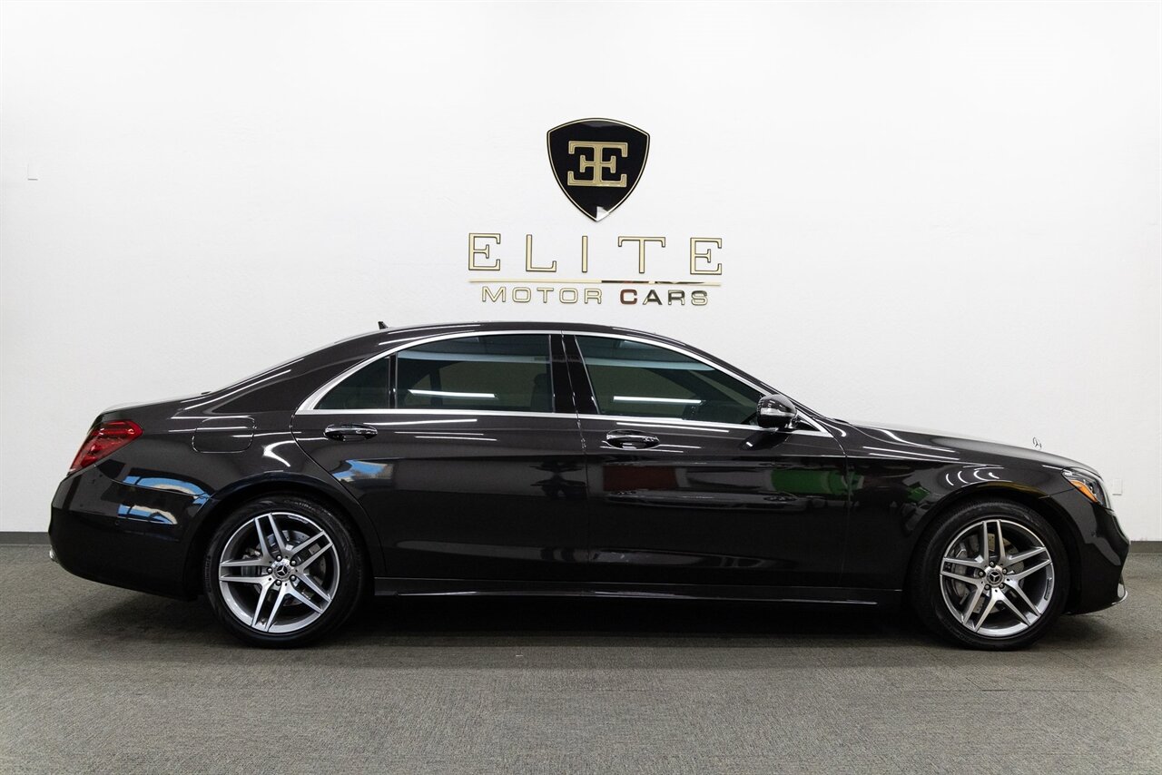 2018 Mercedes-Benz S 560 with 35k miles. Designo Mocha Black Metallic with Porcelain and Black Leather.