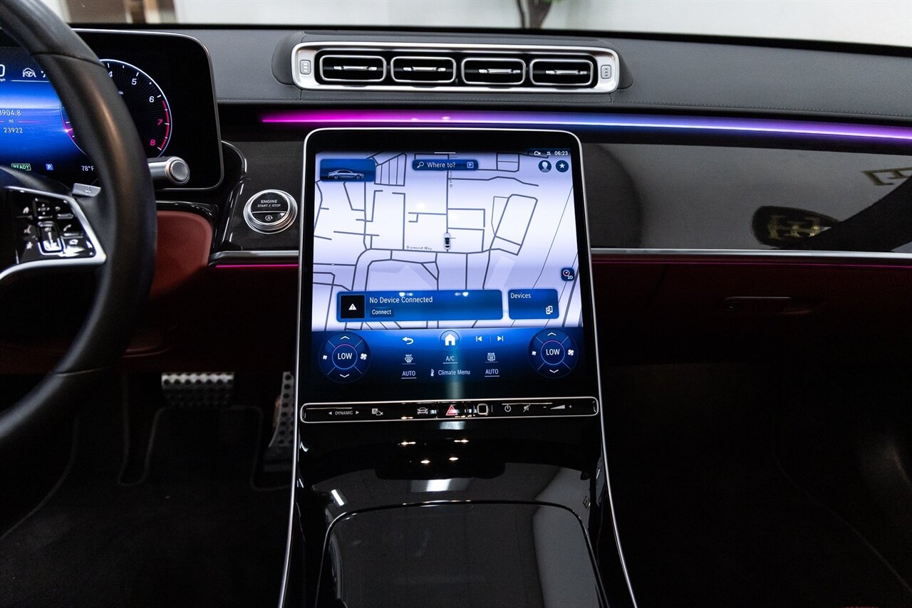2021 Mercedes-Benz S 580 with 23k miles. Mojave Silver Metallic with designo Bengal Red/Black w/designo Exclusive Nappa Leather.